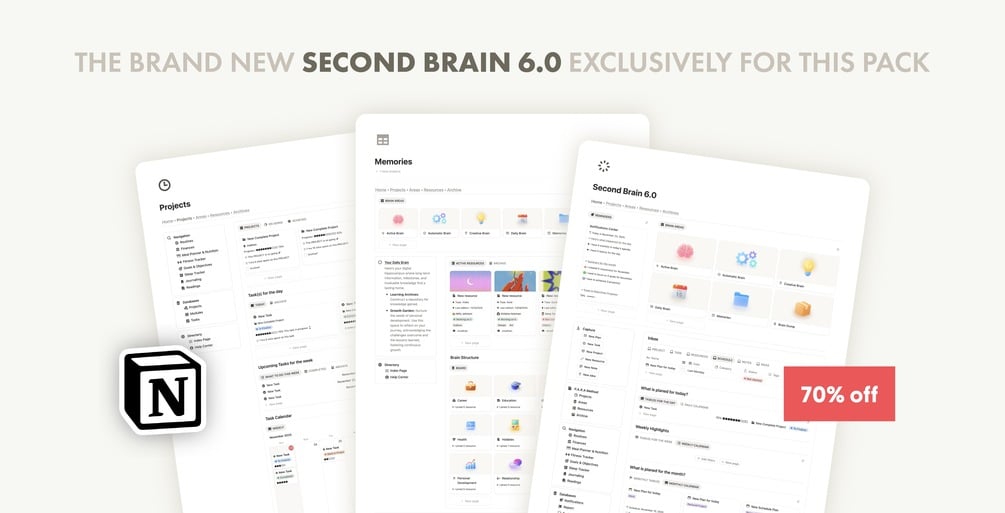 - Save Big! Get your hands on multiple high-value Notion templates, planners, workbooks, and more with 70% discount!