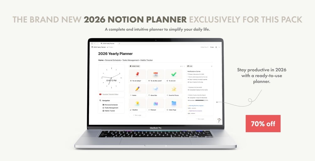 - Infinite Pack ($299): Get access to ALL the Notion templates in my shop, including everything for 2026 and beyond. Unlimited access to new products as they’re released — perfect for long-term growth!