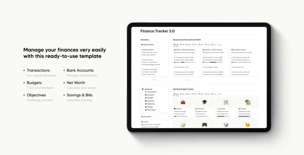 Are you struggling to stay on top of your finances, track expenses, or meet your savings goals? The Finance Tracker 3.0 is here to revolutionize the way you manage your money. This comprehensive Notion template is perfect for anyone looking to gain control over their financial life with ease and efficiency.