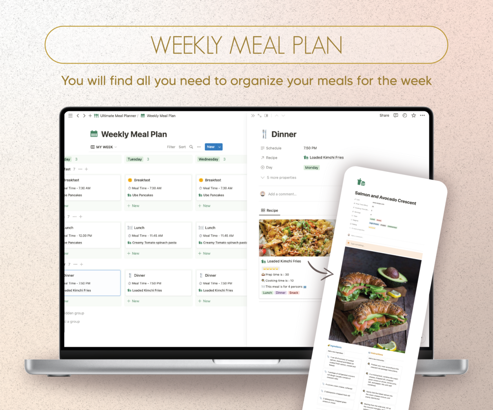 🗓️ Plan Like a Pro: With our Weekly Meal Plan template, create comprehensive meal plans for breakfast, lunch, dinner, and snacks. Connect recipes from your library seamlessly and stay on track with your schedule and dietary preferences. 📆🥗