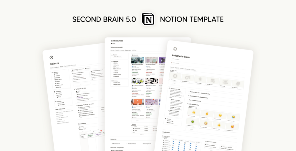 The Second Brain 5.0 is exactly what you need! Transform your ideas into actions and organize your life like never before. Powered by the PARA method, this organizational system gives you a clear and structured view of both personal and professional projects. With this Second Brain, you’ll have a reliable ally to navigate all areas of your daily life with confidence and ease.