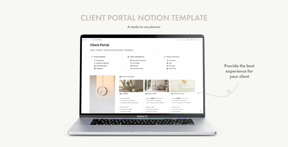 Download the Client Portal Notion Template now to elevate your client management process. Whether you’re a freelancer, agency owner, or service provider, this template is designed to help you work smarter, not harder. Transform your workflow and make every project professional, efficient, and smooth—because your clients deserve the best!