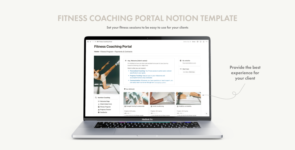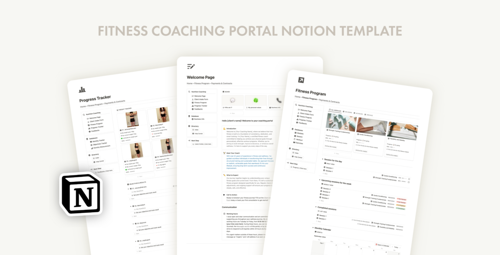 Elevate your coaching business with the Fitness Coaching Portal Notion Template. Start managing your clients with ease and delivering programs that drive results. Whether you’re training online or in person, this template is the ultimate tool for fitness coaches.